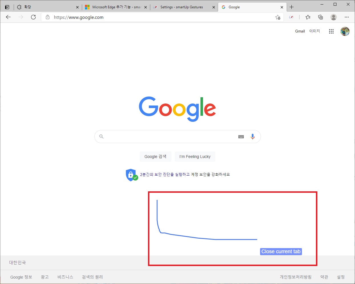 참고로 마우스 제스쳐는 대부분의 인터넷 사이트에서 사용이 가능하긴 하지만 설정 페이지 같이 간혹 사용이 불가능한 페이지도 있으니 알아두는 것이 좋다.