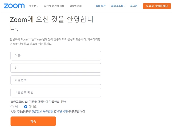 - 기존에 줌에 가입한 계정이 있더라도 네이트 계정으로 다시 가입을 해야 한다.